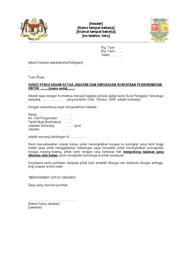 Contoh Surat Sokongan Ketua Jabatan Untuk Temuduga Spa Contoh Surat